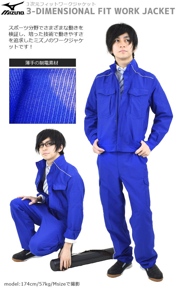 【在庫処分/ポイント10倍】作業服 ミズノ 3次元フィット ワークジャケット 作業着 ジャケット ブルゾン 制電 消臭 オールシーズン 通年用 メンズ mizuno C2JE8182